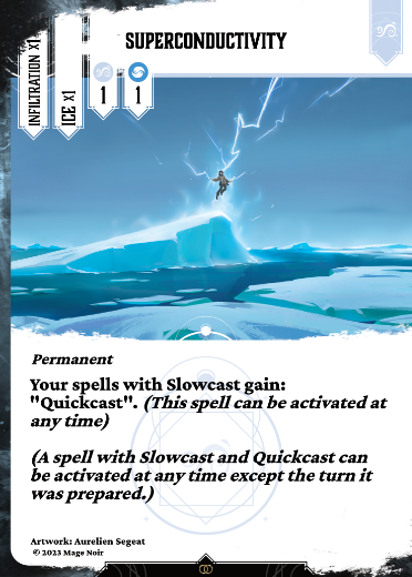 Your spells with Slowcast gain: « Quickcast ». (This spell can be activated at any time) (A spell with Slowcast and Quickcast can be activated at any time except the turn it was prepared.)