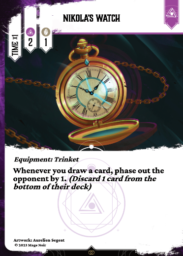 Whenever you draw a card, phase out the opponent by 1. (Discard 1 card from the bottom of their deck)