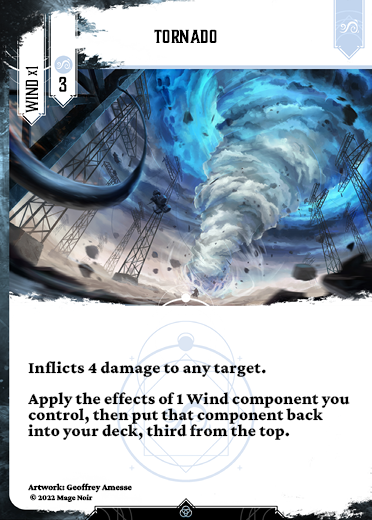 Inflicts 4 damage to any target.Apply the effects of 1 Wind component you control, then put that component back into your deck, third from the top.