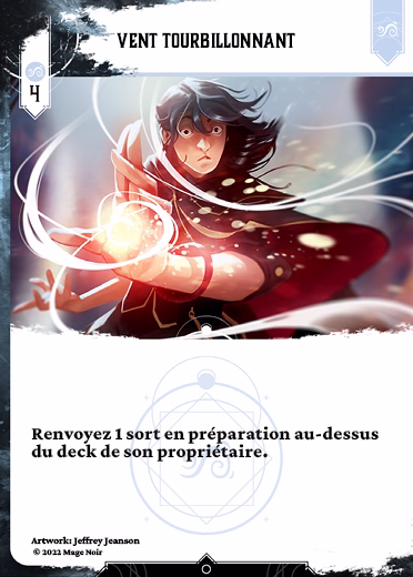 De même à l'activation d'une Tornade. Ce sort peut alors renvoyer la Tornade au dessus du deck de son propriétaire, mais celle-ci ira ensuite à sa défausse.