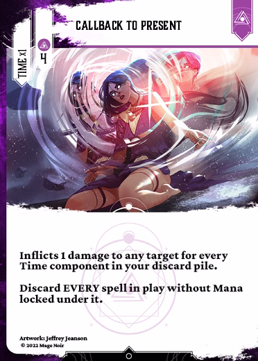 Inflicts 1 damage to any target for every Time component in your discard pile.