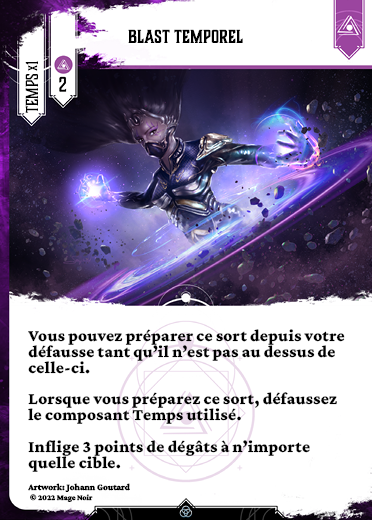 Lorsque vous préparez ce sort, défaussez le composant Temps utilisé.