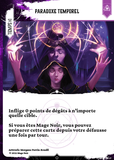 Si vous êtes Mage Noir, vous pouvez préparer cette carte depuis votre défausse une fois par tour.