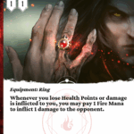 If a Fire spell you control would inflict damage to an opposing target, it deals that much damage plus 1 (or 2 if you’re a Mage Noir). Then, Burning robe inflicts 1 damage to you.