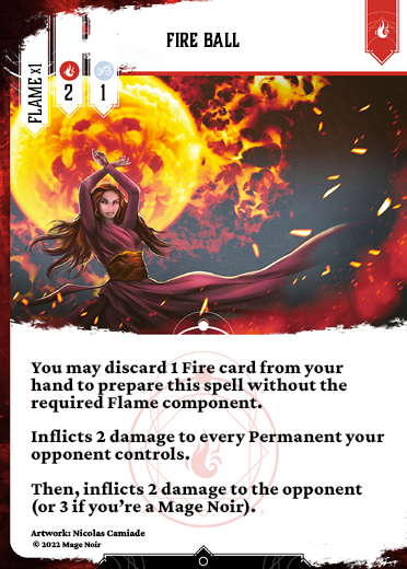 Then, inflicts 2 damage to the opponent (or 3 if you’re a Mage Noir).