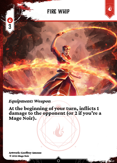 At the beginning of your turn, inflicts 1 damage to the opponent (or 2 if you’re a Mage Noir).