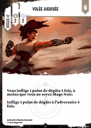 Vous inflige 1 point de dégâts 5 fois, à moins que vous ne soyez Mage Noir.