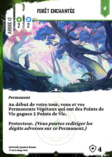 Au début de votre tour, vous et vos Permanents Végétaux qui ont des Points de Vie gagnez 2 Points de Vie.Protecteur (Vous pouvez rediriger les dégâts adverses sur ce Permanent.)