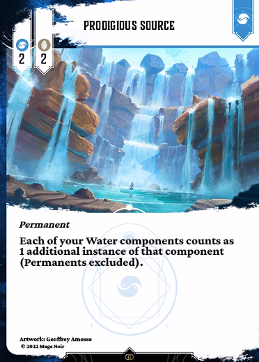 Each of your Water components counts as 1 additional instance of that component (Permanents excluded).