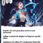 Une fois par tour pendant votre phase principale, inflige 2 points de dégâts à l’adversaire.Si l’adversaire ne subit aucun de ces dégâts, choisissez 1 Équipement qu’il contrôle : celui-ci n’applique plus ses effets jusqu’à la fin de votre tour.