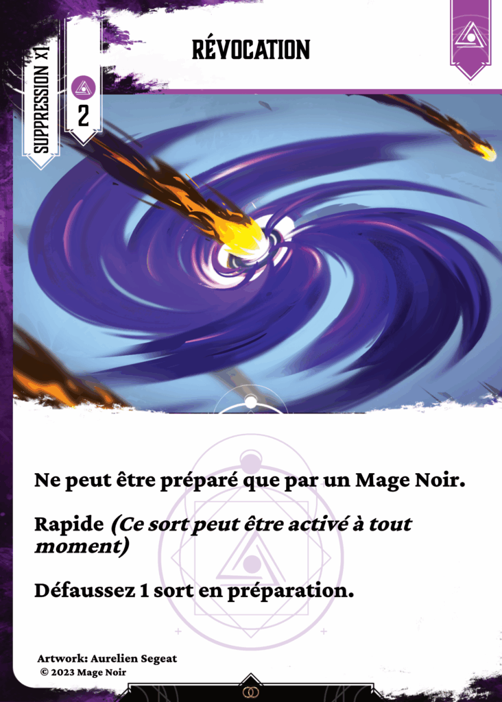 Ne peut être préparé que par un Mage Noir.Rapide (Ce sort peut être activé à tout moment)Défaussez 1 sort en préparation.