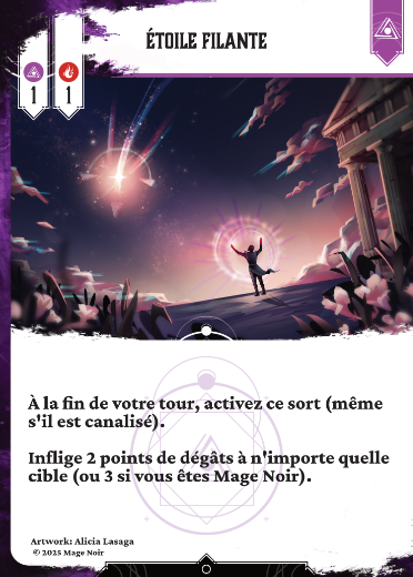 Inflige 2 points de dégâts à n’importe quelle cible (ou 3 si vous êtes Mage Noir).