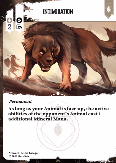 As long as your Animal is face up, the active abilities of the opponent’s Animal cost 1 additional Mineral Mana.